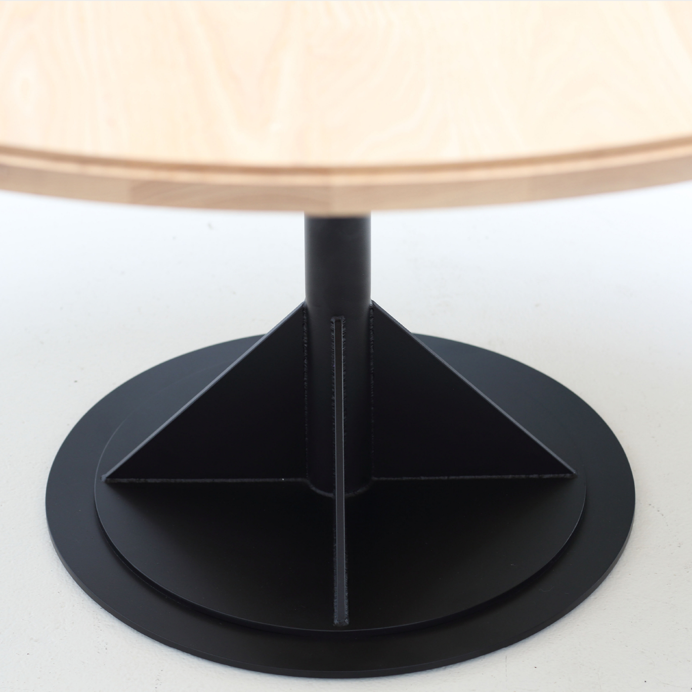 Solid timber top with a two pack polyurethane finish, and a powder coated steel base
