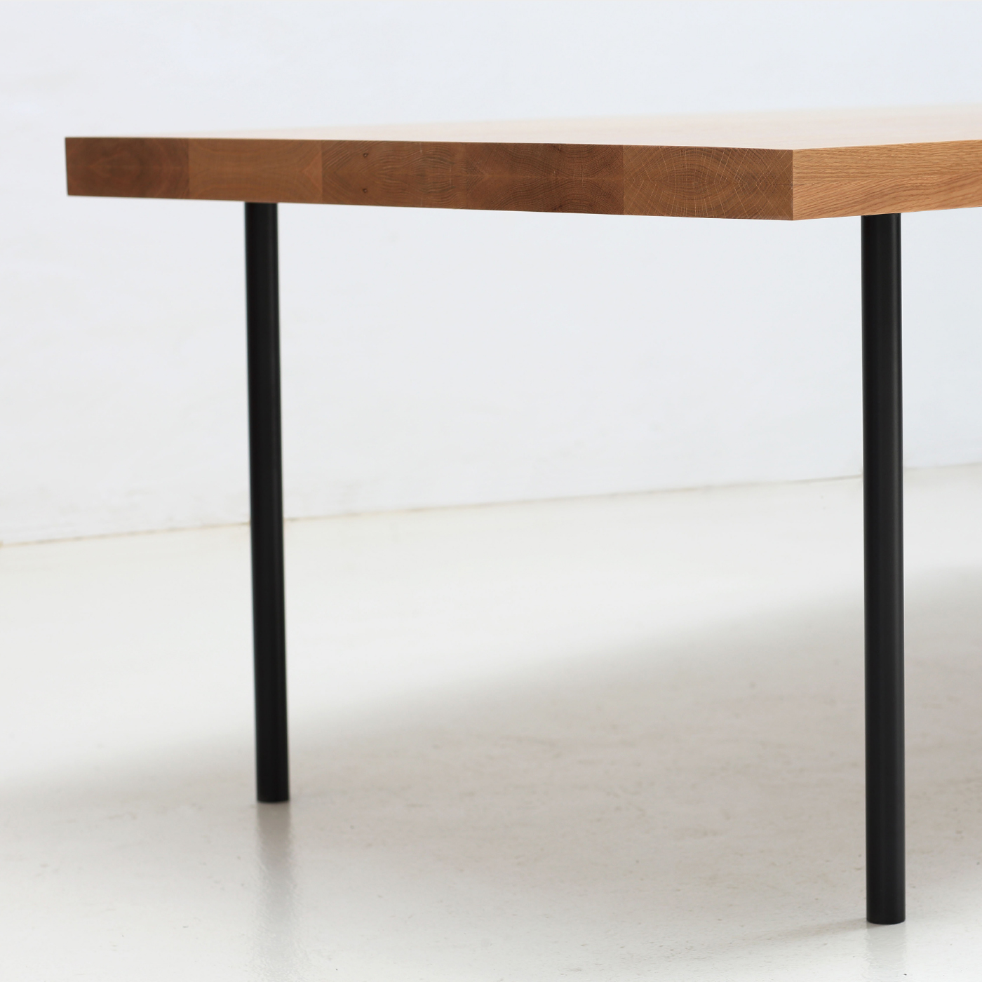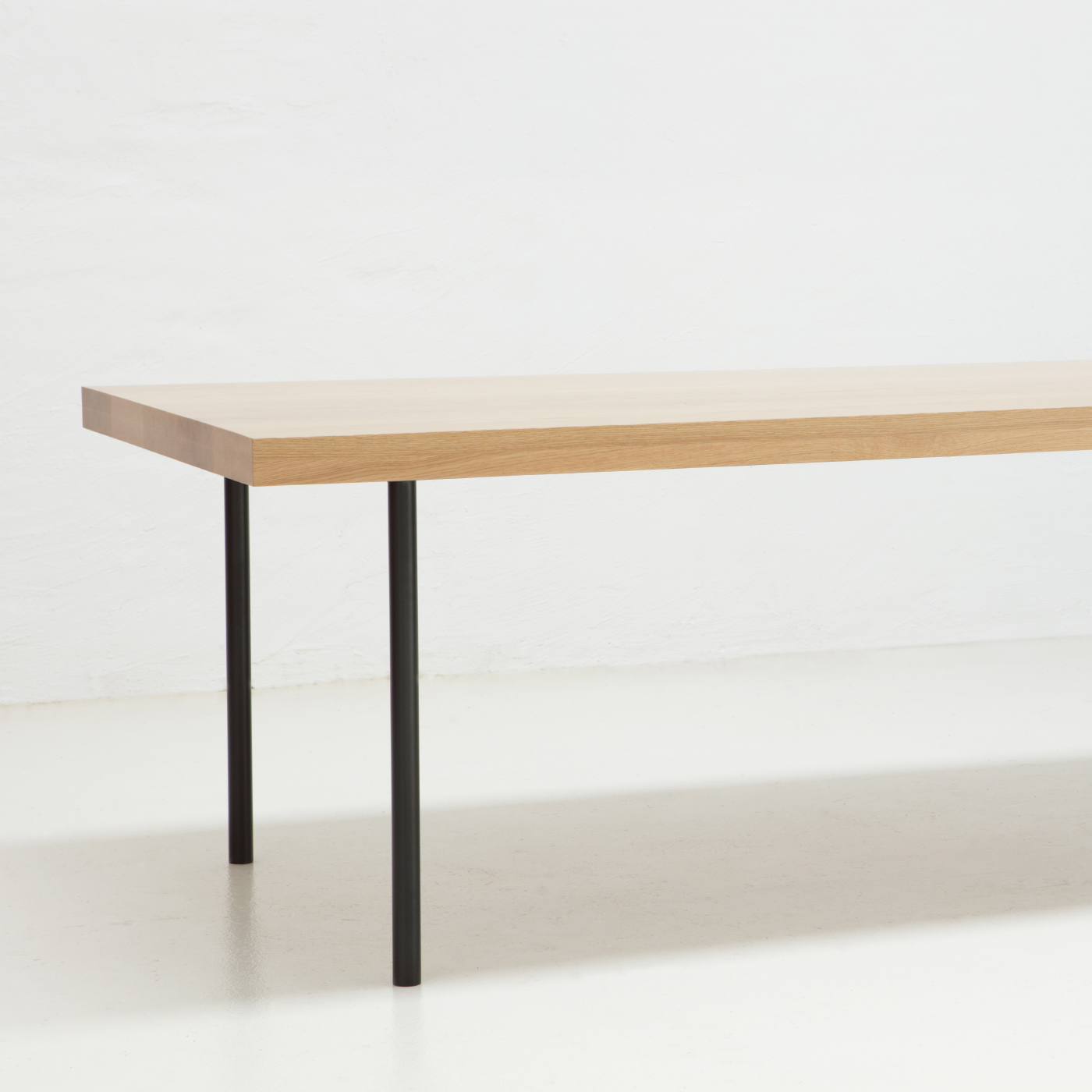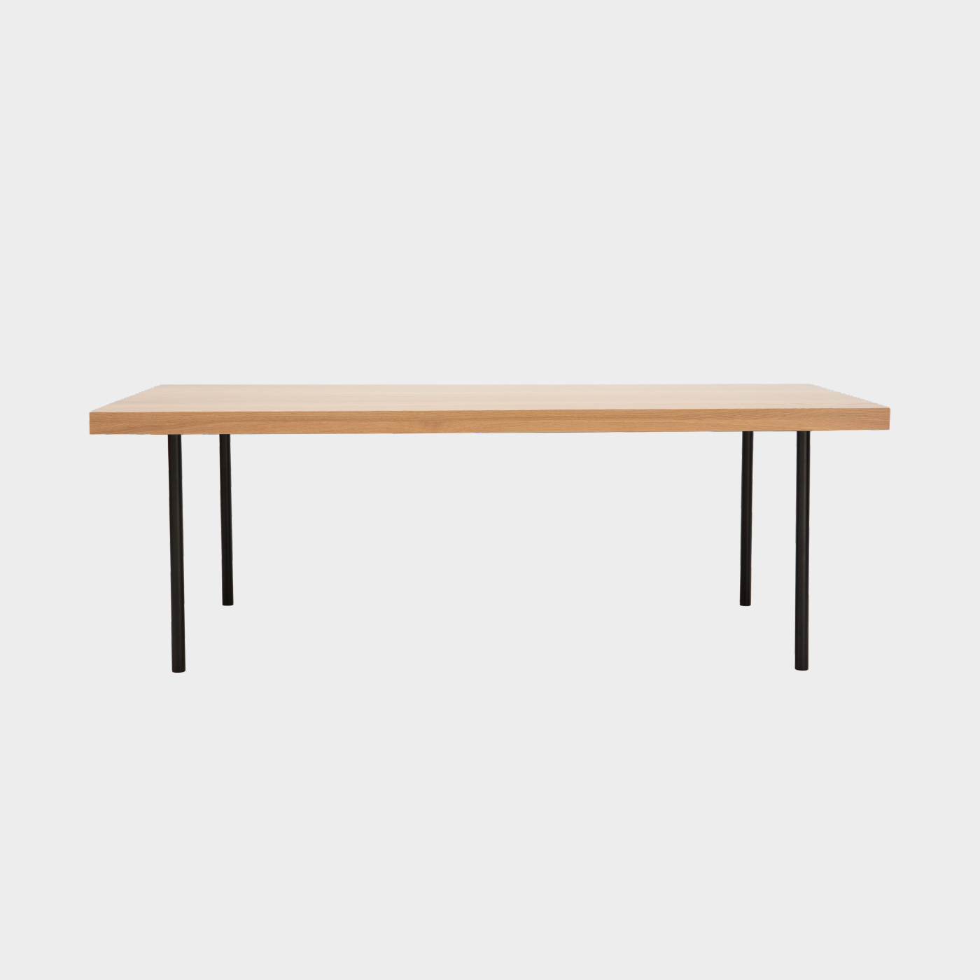 Solid timber top with a two pack polyurethane finish and a powder coated steel frame and legs